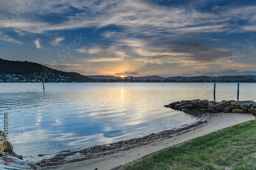 © Merrillie, Obraz premium Sunset Bay Waterscape with High Clouds