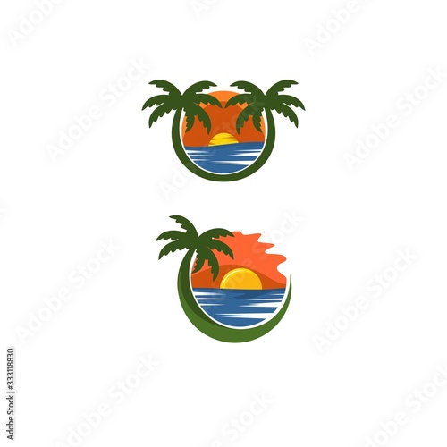 © RIZAL, Naklejka premium Sunset Beach Flat design logo