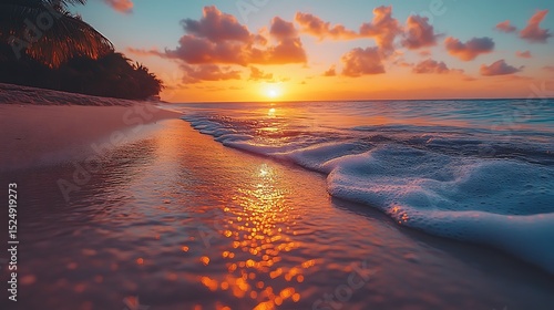 © Purnomo adi, Fototapeta premium Sunset beach scene ocean color
