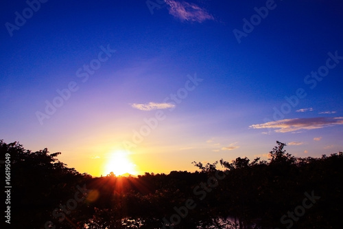 Fototapeta premium sunset beautiful in sky dark color and silhouette tree colorful landscape...