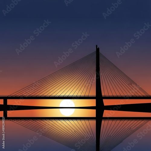 © trul, Obraz premium Sunset behind a cable-stayed bridge.