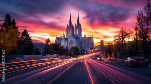 Fototapeta premium sunset behind a stunning white cathedral