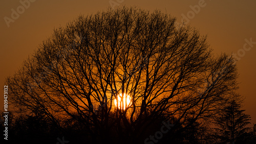 © Felix, Obraz premium Sunset behind big tree silhouette