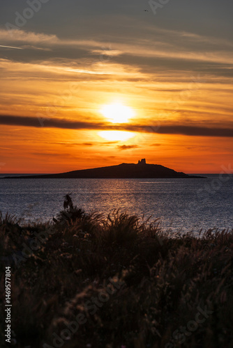 Fototapeta premium Sunset behind Isola delle Femmine, Terrasini, Sicily, Italy