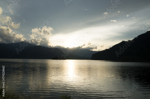 © nathamag11, Fototapeta premium Sunset behind the dam