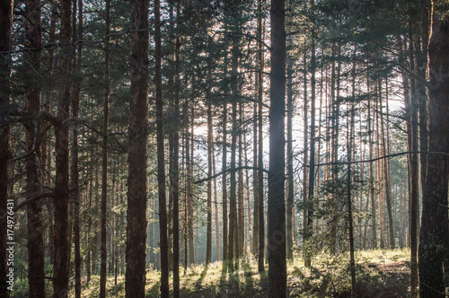 Naklejka premium Sunset behind the trees, Bulgaria, Summer 2016