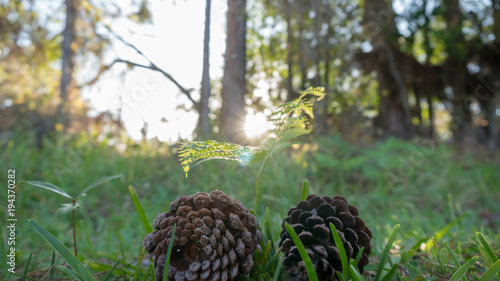 Obraz premium Sunset Behind Two Pine Cones