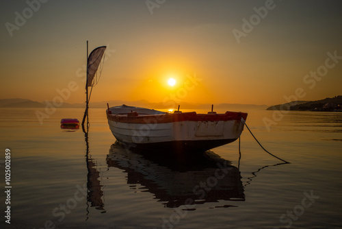 Naklejka premium Sunset boat