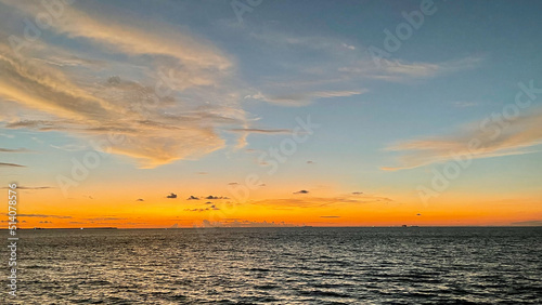 Naklejka premium Sunset by the ocean on a calm cloudy day