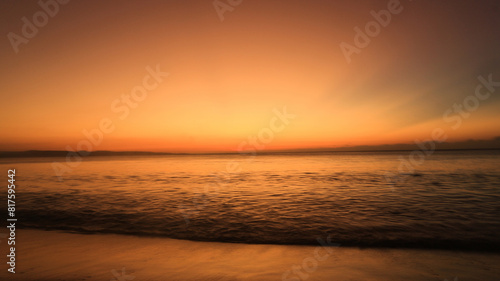 © Jopet, Obraz premium Sunset by the shore. Waves crashing into fine white sand during golden hour