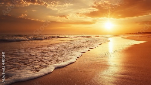 © Vilaphon , Fototapeta premium Sunset casting a golden glow over a sandy beach