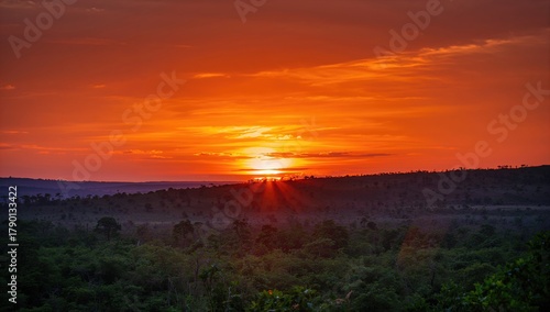 © The 2R Artificiality, Obraz premium Sunset casting vibrant colors over a park, showcasing seasonal change
