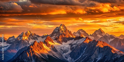 © Praphan, Obraz premium Sunset casting warm glow on the mountain peaks, mountains, sunset, evening, dusk, colorful, serene, nature, majestic