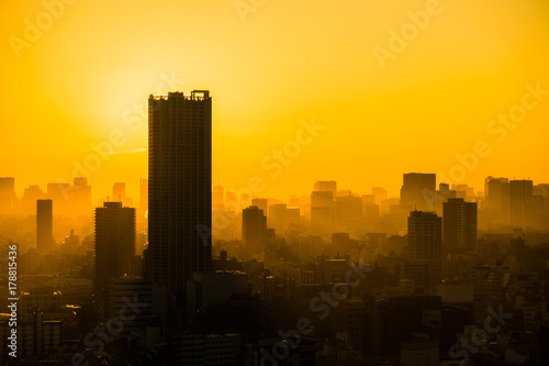 Obraz premium Sunset city view yellow sky