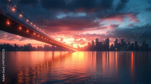 Obraz premium Sunset Cityscape Bridge
