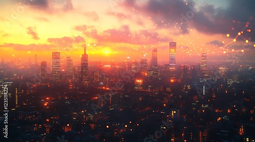 © Anugrah, Fototapeta premium Sunset Cityscape Digital Art Futuristic Metropolis