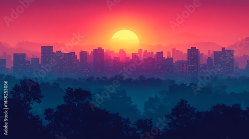 © Leo, Fototapeta premium Sunset cityscape in vibrant colors artwork