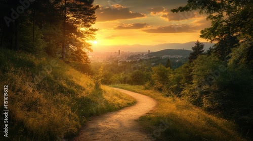 Obraz premium Sunset Cityscape Trail: A Serene Evening Hike