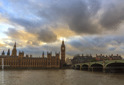 © walkingcamera, Naklejka premium Sunset clouds above Westminster