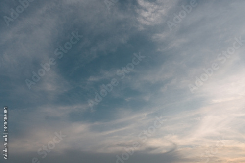Obraz premium Sunset cloudy blue sky with the orange sun