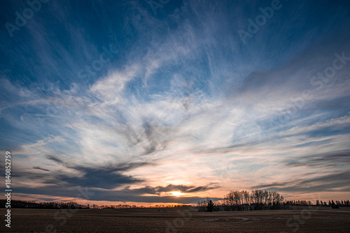 © Liliia, Fototapeta premium Sunset cloudy sky over the field landscape