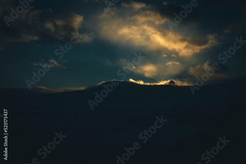 © Artvibe, Obraz premium Sunset cloudy sky with the orange sun