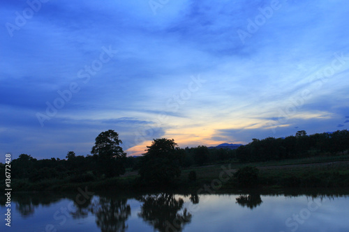 Obraz premium sunset colorful and silhouette woodland twilight in nature