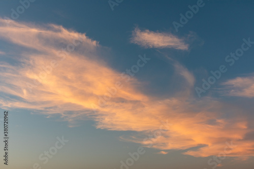 Naklejka premium Sunset colorful epic colorful golden clouds on blue vivid sky. Magic dusk...