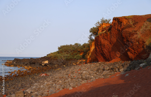 Naklejka premium Sunset colors of the rocks of Barro Vermelho, Graciosa island, Azores