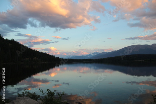 Fototapeta premium Sunset Colors On The Lake, Jasper National Park, Alberta