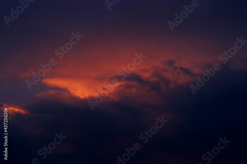 © Live heavenly, Obraz premium Sunset. Dark orange sky and clouds.