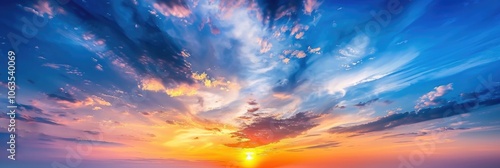 Fototapeta premium Sunset Dramatic Sky. Twilight Color Sky with Colorful Clouds Background