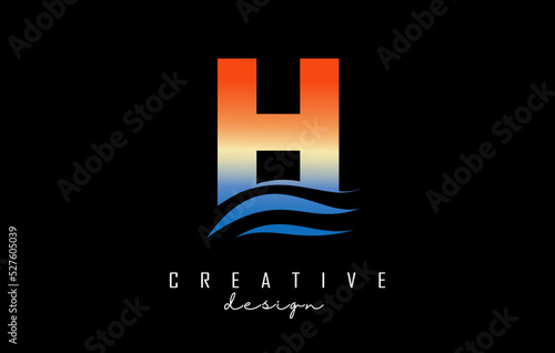 Obraz premium Sunset effect letter H logo with waves lines. Letter with geometric waves and...