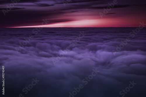 © eosboy, Fototapeta premium Sunset flight above sky airplane wing, airplane trip