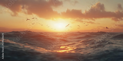 © Nikola, Obraz premium Sunset Flight Over Ocean