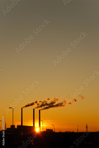 Fototapeta premium Sunset for industrial buildings with smoking pipes