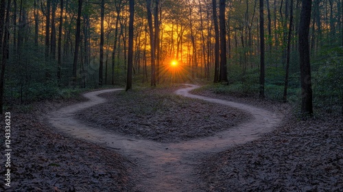 © TITISCAHYA, Obraz premium Sunset forest path choice, nature, background