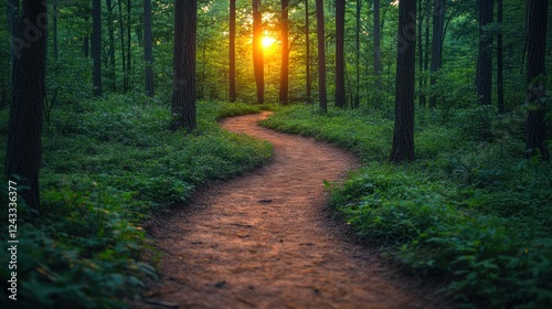 Obraz premium Sunset forest path winding through trees