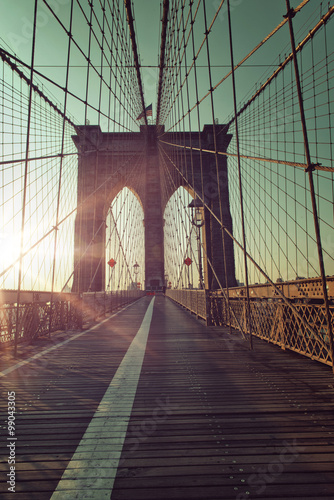 Fototapeta premium Sunset from Brooklyn Bridge walkway