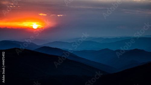 © Szymon Bartosz, Fototapeta premium Sunset from the Polonina Runa (Rivna). The Carpathian Mountains. Ukraine.