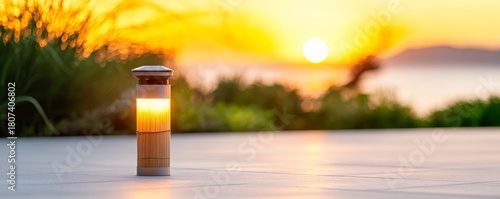© Photo18@desing, Obraz premium Sunset Glow Modern Garden Lamp, Coastal View , Outdoor lighting