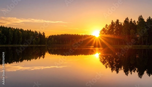 Obraz premium Sunset glow over lake reflections