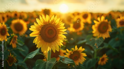 Fototapeta premium Sunset Glow Over Sunflower Field