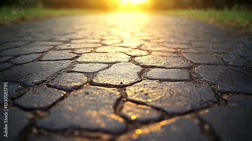 Obraz premium Sunset Glows On Cobblestone Path Road