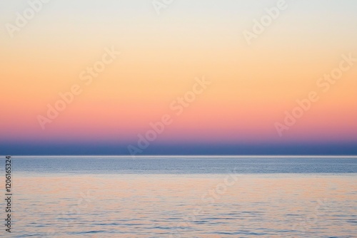 © Nico, Naklejka premium Sunset Gradient: A sky transitioning from deep orange to soft pink, with the horizon fading into a calm, dusky blue