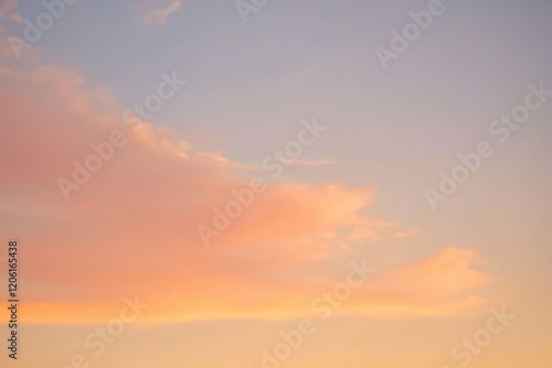 © Nico, Naklejka premium Sunset Gradient: A sky transitioning from deep orange to soft pink, with the horizon fading into a calm, dusky blue