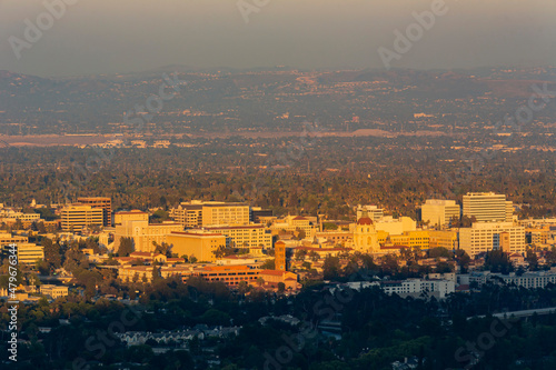Obraz premium Sunset high angle view of the beautiful Pasadena City hall and Pasadena downtown