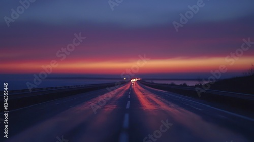 © San, Fototapeta premium Sunset Highway Drive: Serene Evening Road Trip