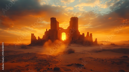 © Purnomo adi, Fototapeta premium Sunset illuminating ancient desert ruins.