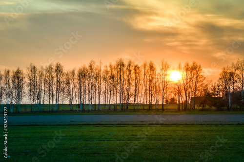 © Senatorek, Obraz premium Sunset illuminating the spring fields.